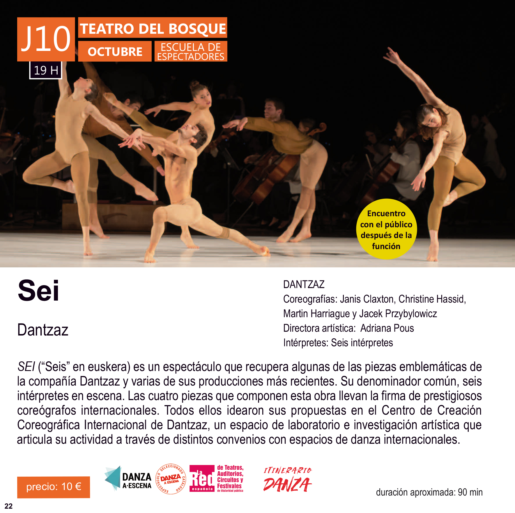 Imagen en alta resolución. Este enlace se abrirá mediante lightbox, puede haber un cambio de contextoEl Teatro del Bosque acoge este jueves 10 de octubre a las 19 horas la obra "SEI" (seis en euskera, un espectáculo que recupera algunas de las piezas emblemáticas de la compañía Dantzaz y otras producciones más recientes.