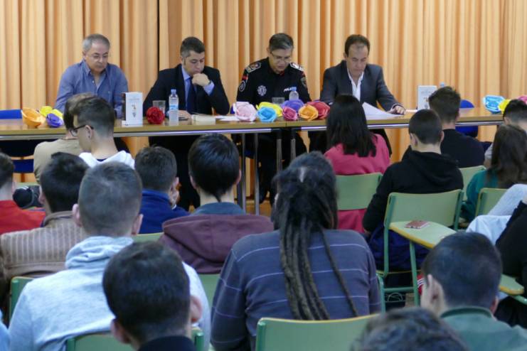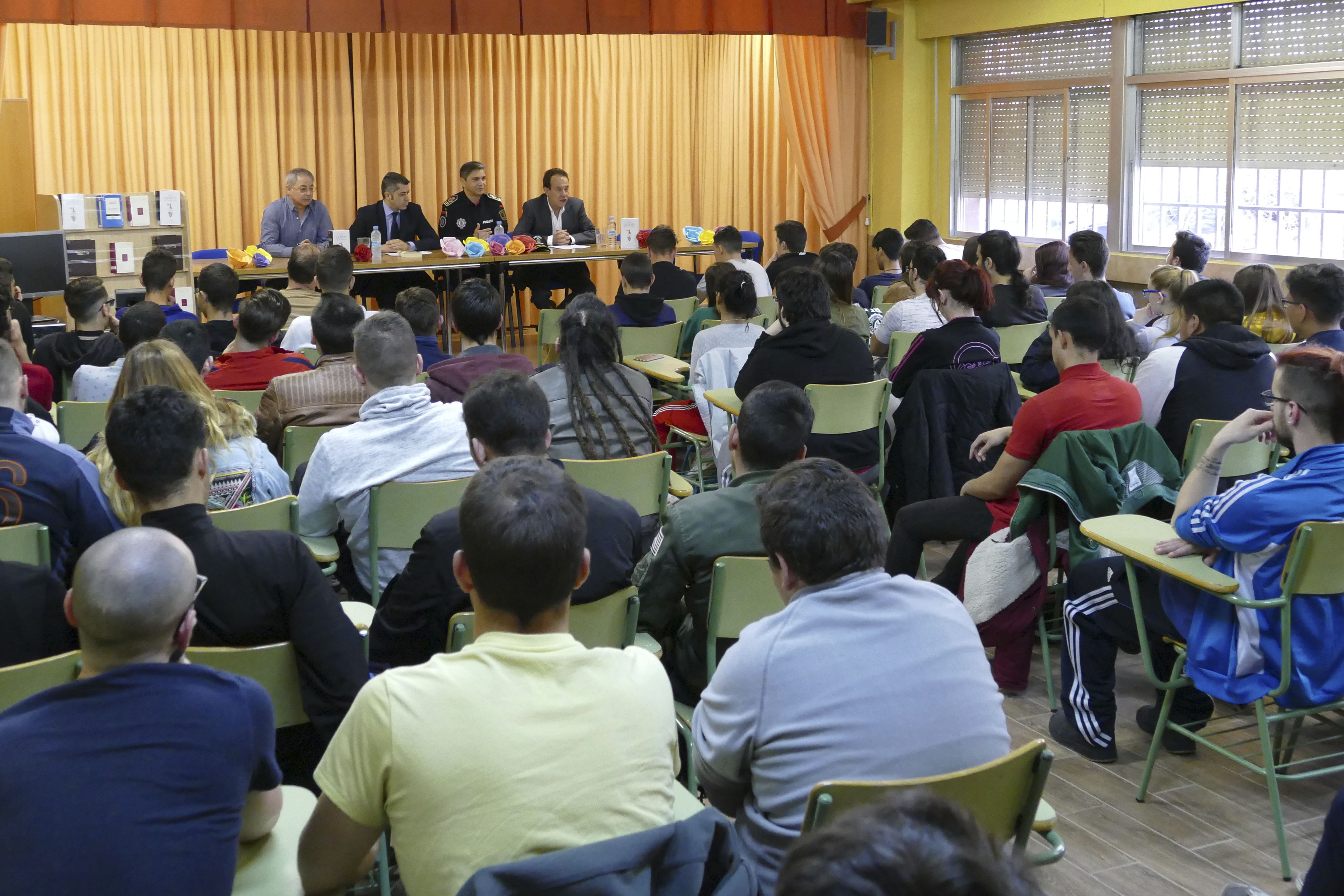 El concejal Roberto Sánchez y el comisario jefe de Policía Municipal inauguran la semana del libro del IES Felipe Trigo