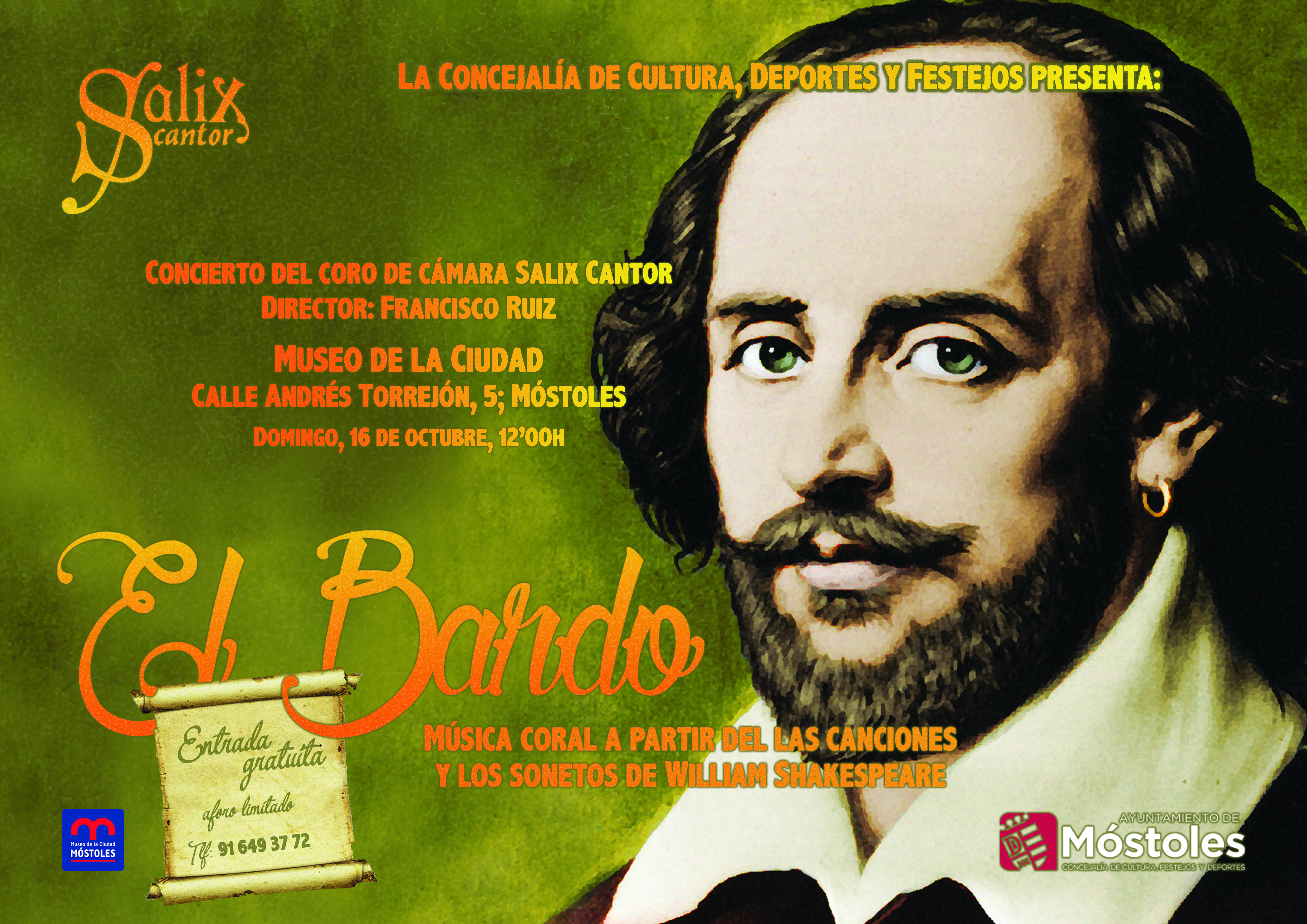 En la conmemoración de los 400 años de la muerte de William Shakespeare, "Salix Cantor" presenta un programa en homenaje al dramaturgo más universal de la lengua inglesa. Comenzando con la música que sus coetáneos escribieron a partir de los versos del Bardo de Avon, el concierto recorre una selección de piezas a cappella que a lo largo de los siglos fueron compuestas a partir de sus sonetos y sus piezas teatrales.
