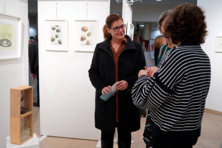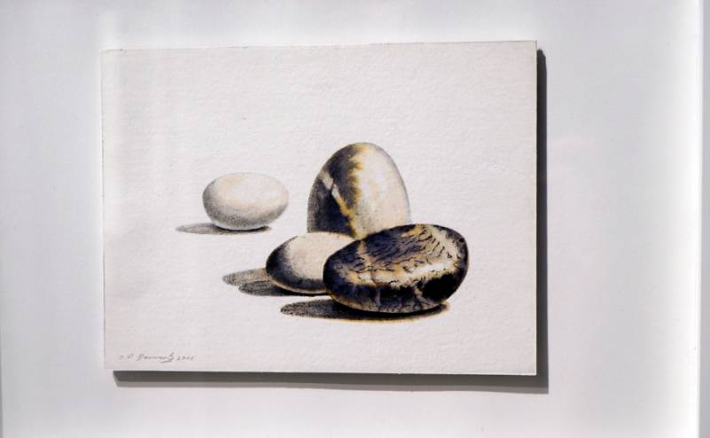 En la exposición el artista, J. P. Benavente nos ofrece diversas composiciones en las que "la piedra pulida y redondeada" es el único motivo, representado en un espacio diáfano y sin límites, mediante diversas técnicas pictóricas como óleo, dibujo, técnicas mixtas, monotipia o collage. Por otra parte, la muestra acoge la combinación de grabados con objetos de origen orgánico, ya sean capullos de seda, nidos, huevos, patas de ave, etc., del artista Alejandrina Alfaro.