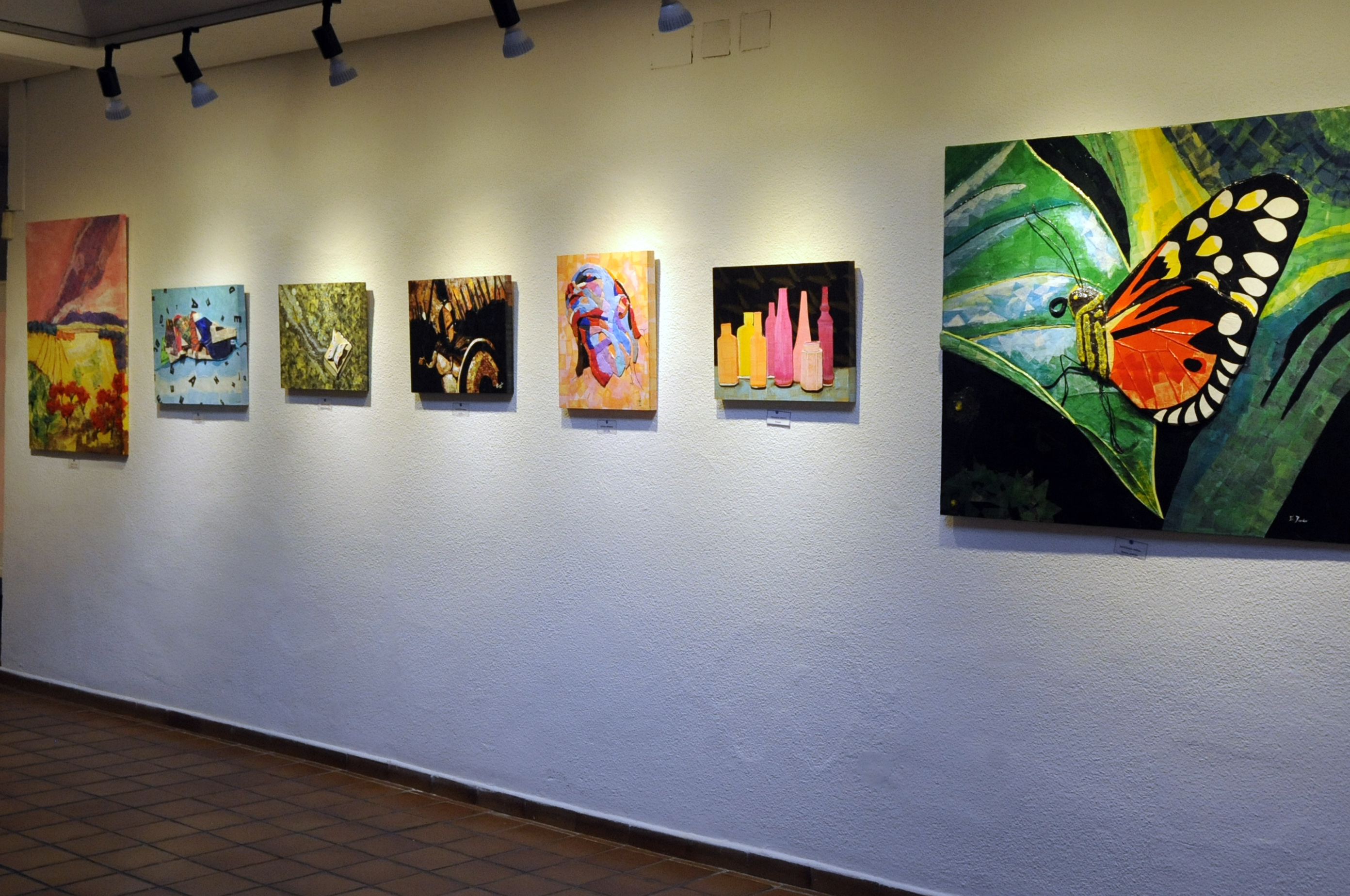 La exposición, que permanecerá hasta el 24 de junio, recoge los resultados de sus trabajos realizados a lo largo del curso y presenta obras en las que sus creadores han utilizado infinitos colores de papel seda con un barniz acrílico, consiguiendo así crear nuevos colores y trasparencias infinitas. Su terminación queda como un collage brillante, semejante a un esmalte en frio. Las superficies de todas sus obras son diferentes, en algunos casos añaden cartones, distintos papeles, pasta de papel, telas, arenas, arcillas, plastilina... La muestra también acoge objetos trabajados con la misma técnica, en los que resalta importancia del color complementario en la pintura, y una pantalla de papel de grandes dimensiones.