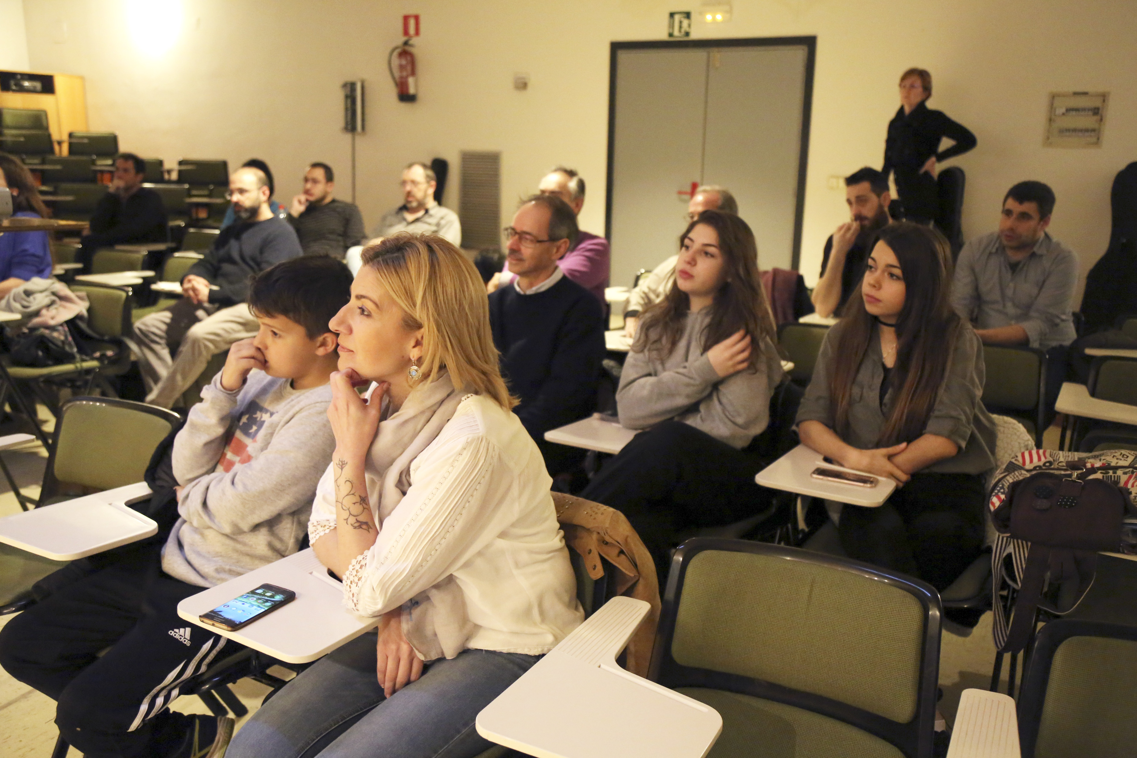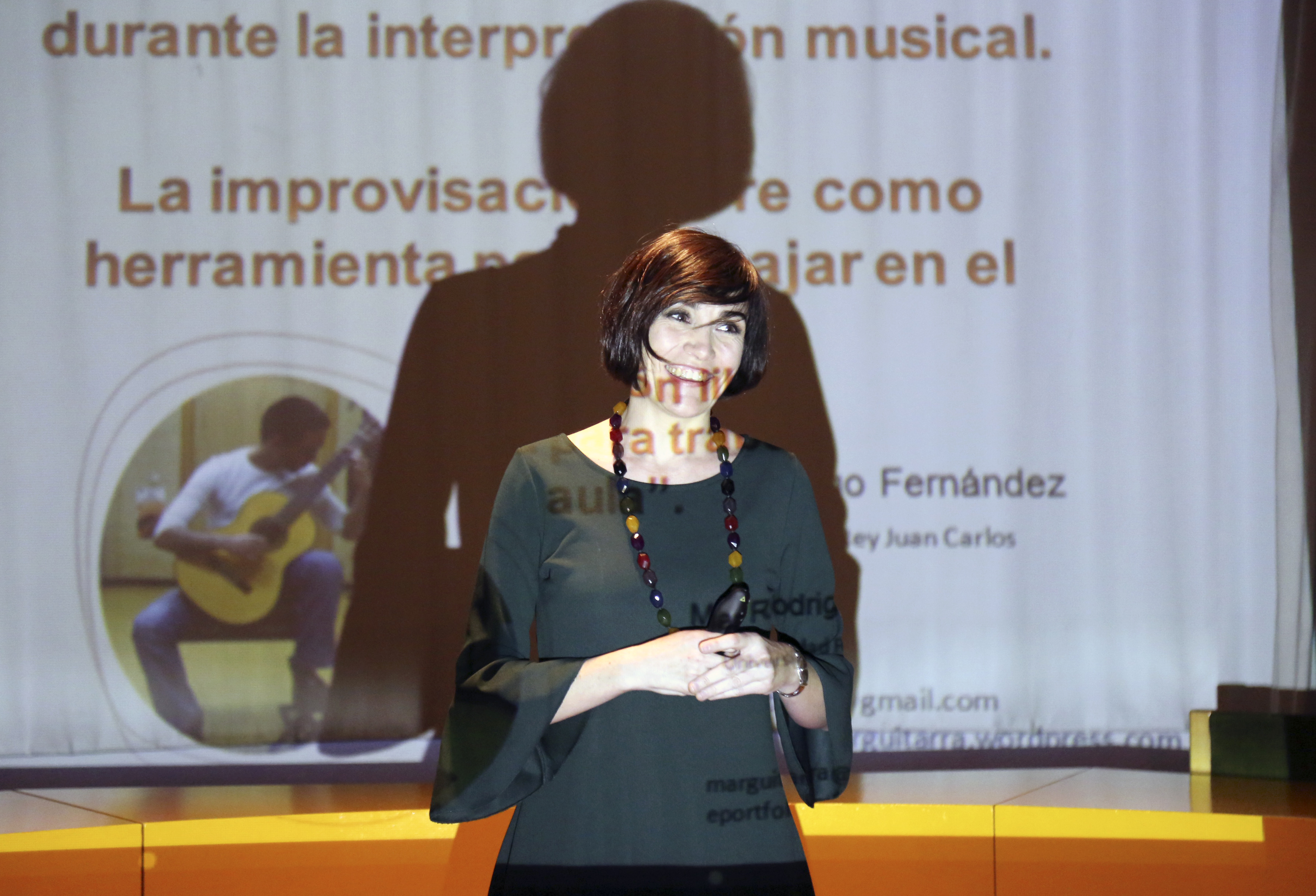 conferencia partitura 1Imagen en alta resolución. Este enlace se abrirá mediante lightbox, puede haber un cambio de contextoconferencia partitura 1La sala de conferencias del Centro Cultural Villa de Móstoles fue sede ayer de la conferencia taller "De la partitura al sonido: implicaciones de la atención durante la interpretación musical", a cargo de la guitarrista y pedagoga Mar Rodrigo. Una actividad totalmente gratuita en la que los asistentes acudieron con un instrumento o cualquier objeto que les permitiera emitir sonidos.