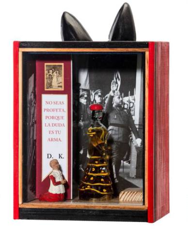 Organizada en el marco del programa expositivo de la Concejalía de Cultura, Bienestar Social y Vivienda, la muestra, basándose en los Caprichos de Goya y en el arte de vanguardia dadaísta, plantea una serie de 26 cajas-collage a modo de escaparates o teatrillos donde reflexiona sobre la historia del pensamiento occidental, haciendo analogías entre la situación política y social del siglo XIX y de principios del siglo XXI.