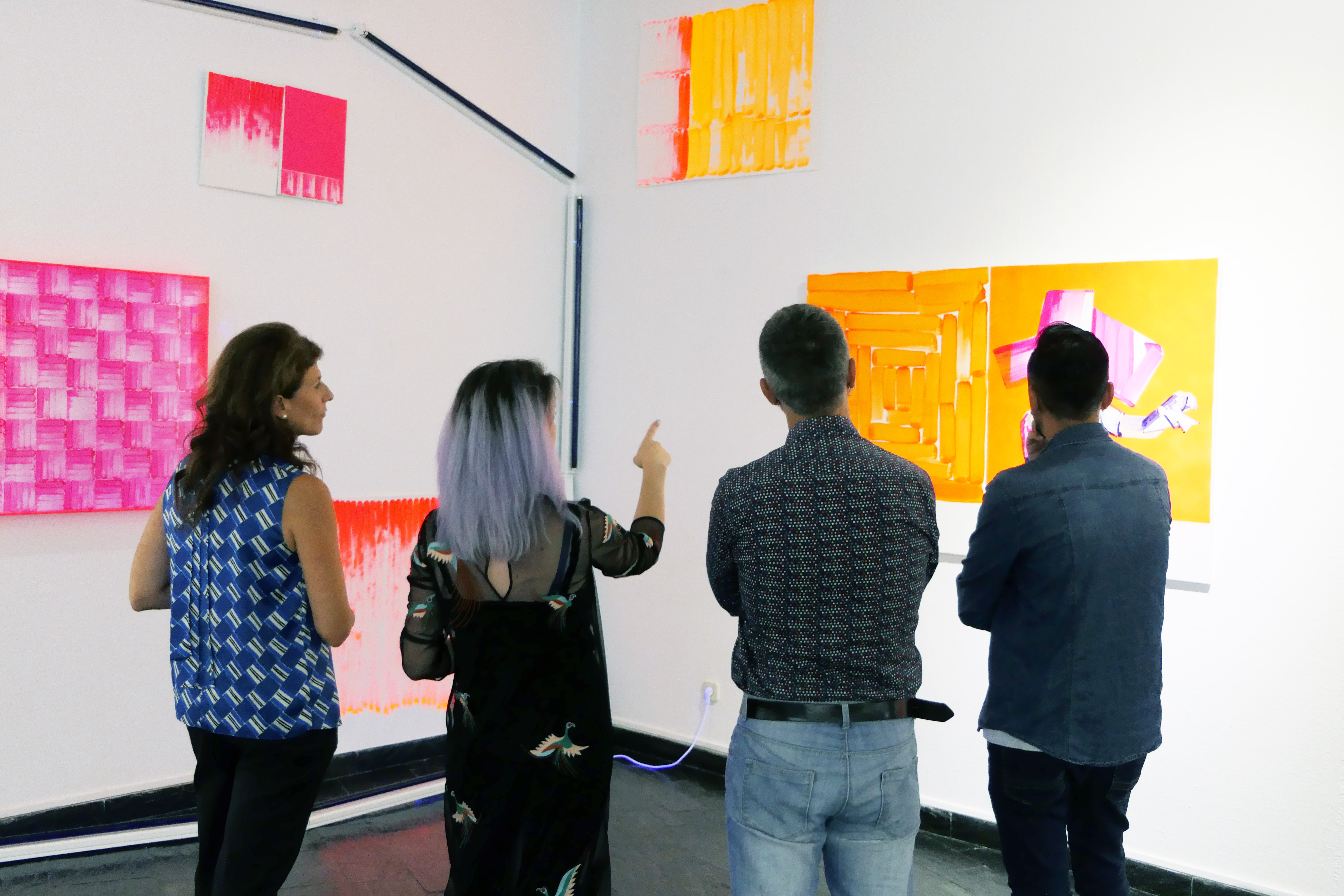 - Lorena Domingo recoge en la exposición varios de sus trabajos en óleo, acrílicos, fluorescentes sobre lienzos y sobre metacrilatos.