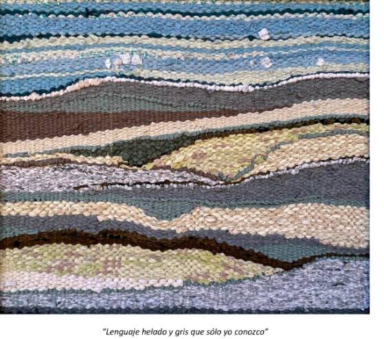 La artista Claudia de Santos, impregnada de esta mezcla de serenidad, nostalgia y soledad aceptada que reflejan los poemas del consagrado autor, ha sentido una fascinación que la ha mantenido encadenada al telar, tejiendo los versos, imaginando paisajes cubiertos de hielo y nieve en los que puede masticarse el dolor de aquello que fue y no volverá nunca a ser. El bramido del tiempo arrasa todo lo que fue en un pasado remoto y no deja más que su memoria. Una memoria líquida y frágil, porque se deshace como se deshace la nieve.