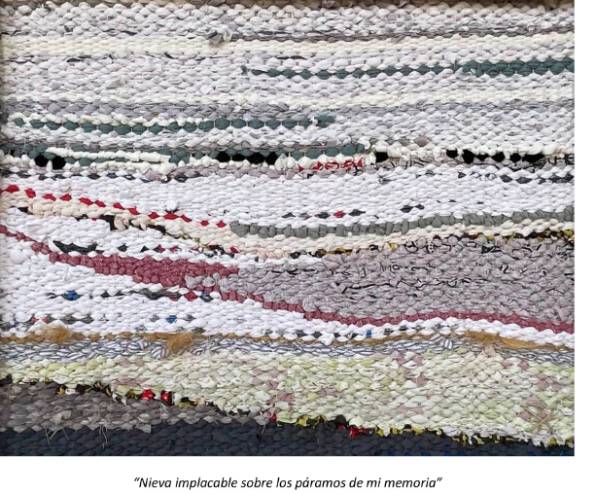 Estos tapices son los versos tejidos de "Memoria de la Nieve". Están tejidos con la verdad aprendida de sus poemas, sabiendo que nada puede esperarse del bramido del tiempo. Son los versos de estos poemas quienes dan título y razón a los tapices que se exponen.