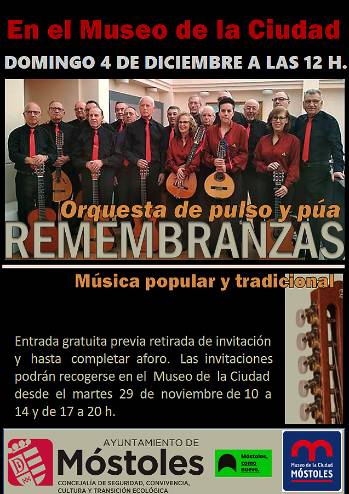 El domingo 4 de diciembre, la orquesta de pulso y púa "Remembranzas" ofrecerá a las 12:00 h un concierto de música popular y tradicional.