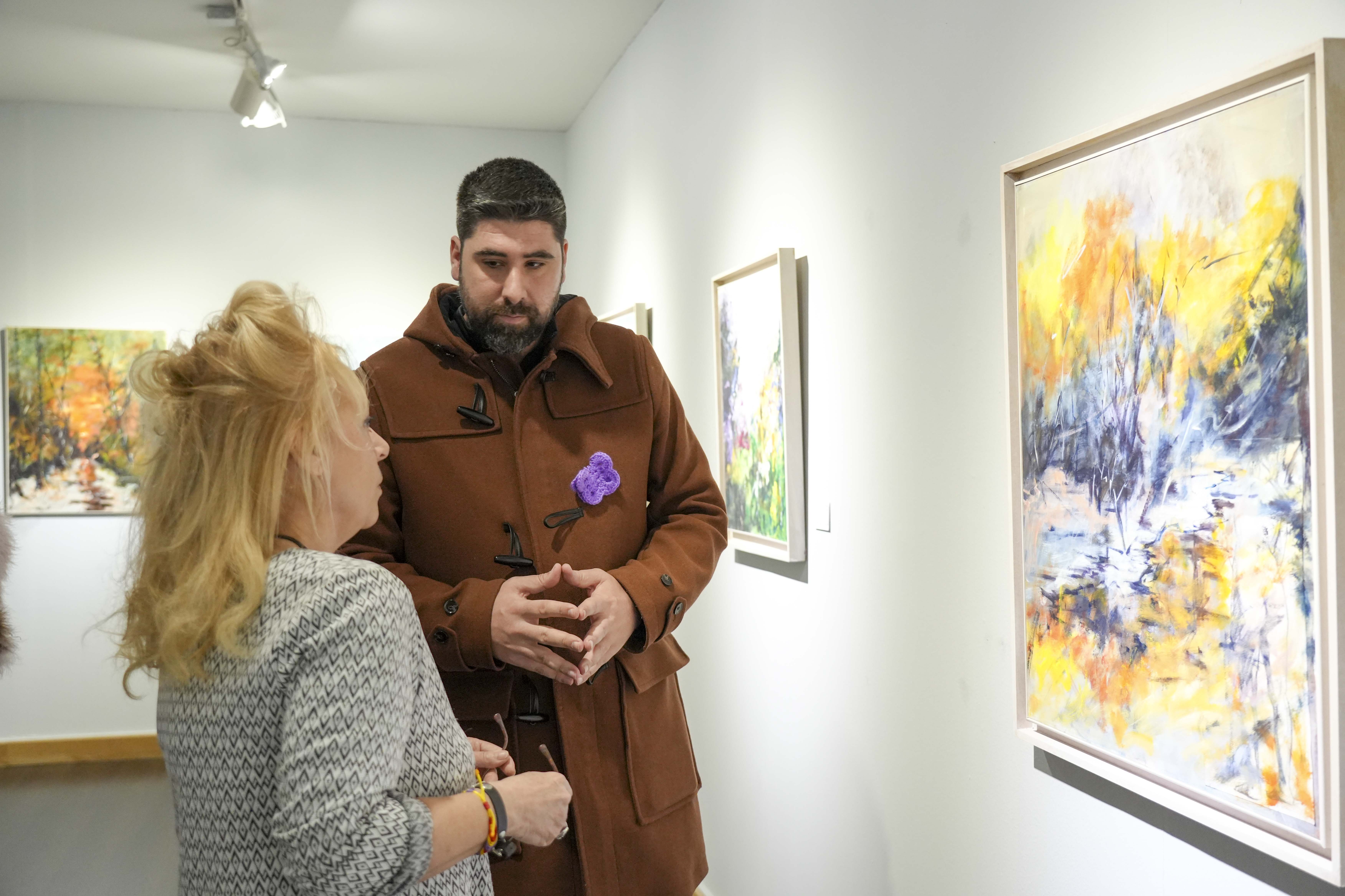 La exposición ha sido inaugurada esta mañana por el Concejal de Cultura, Álex Martín, que ha recorrido la muestra con la pintora.