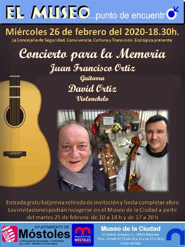 Imagen en alta resolución. Este enlace se abrirá mediante lightbox, puede haber un cambio de contextoEl Museo de la Ciudad acogerá el próximo día 26 de febrero, a partir de las 18.30 horas, el "Concierto para la Memoria", con Juan Francisco Ortiz, a la guitarra, y David Ortiz, al violoncelo, promovido por la Concejalía de Seguridad, Convivencia, Cultura y Transición Ecológica y con entrada gratuita.