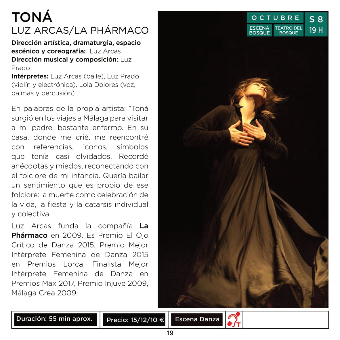 El sábado 8, a las 19:00 h en el Teatro del Bosque, se representará el espectáculo de danza "Toná Luz Arcas" por la compañíaLa Phármaco.