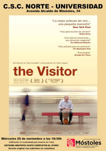 El programa "Cine + Cine", del Centro Sociocultural Norte Universidad, ofrecerá a las 18:30 h, la proyección de la película "The visitor". La entrada es gratuita hasta completar aforo. La recogida de las localidades debe hacerse de lunes a viernes de 10:00 h a 14:00 h y de 17:00 h a 20:00 h en la recepción del centro.
