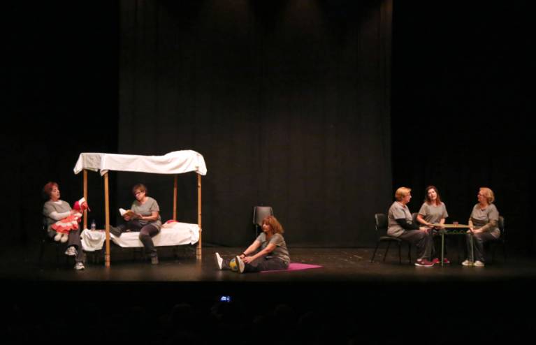 Imagen en alta resolución. Este enlace se abrirá mediante lightbox, puede haber un cambio de contextoEl Taller de Teatro de la EMA Valle Inclán representó ayer en el Teatro Villa de Móstoles la obra "¡Ay…Hombres!", cuya recaudación íntegra irá destinada para la Asociación contra el Cáncer Gástrico y Gastrectomizados (ACCGG), cuyo Día Internacional se celebró ayer, 28 de noviembre. A la representación asistió la alcaldesa de Móstoles, Noelia Posse, acompañada por la concejala de Igualdad, Sanidad y Mayores, Ana María Rodrigo.