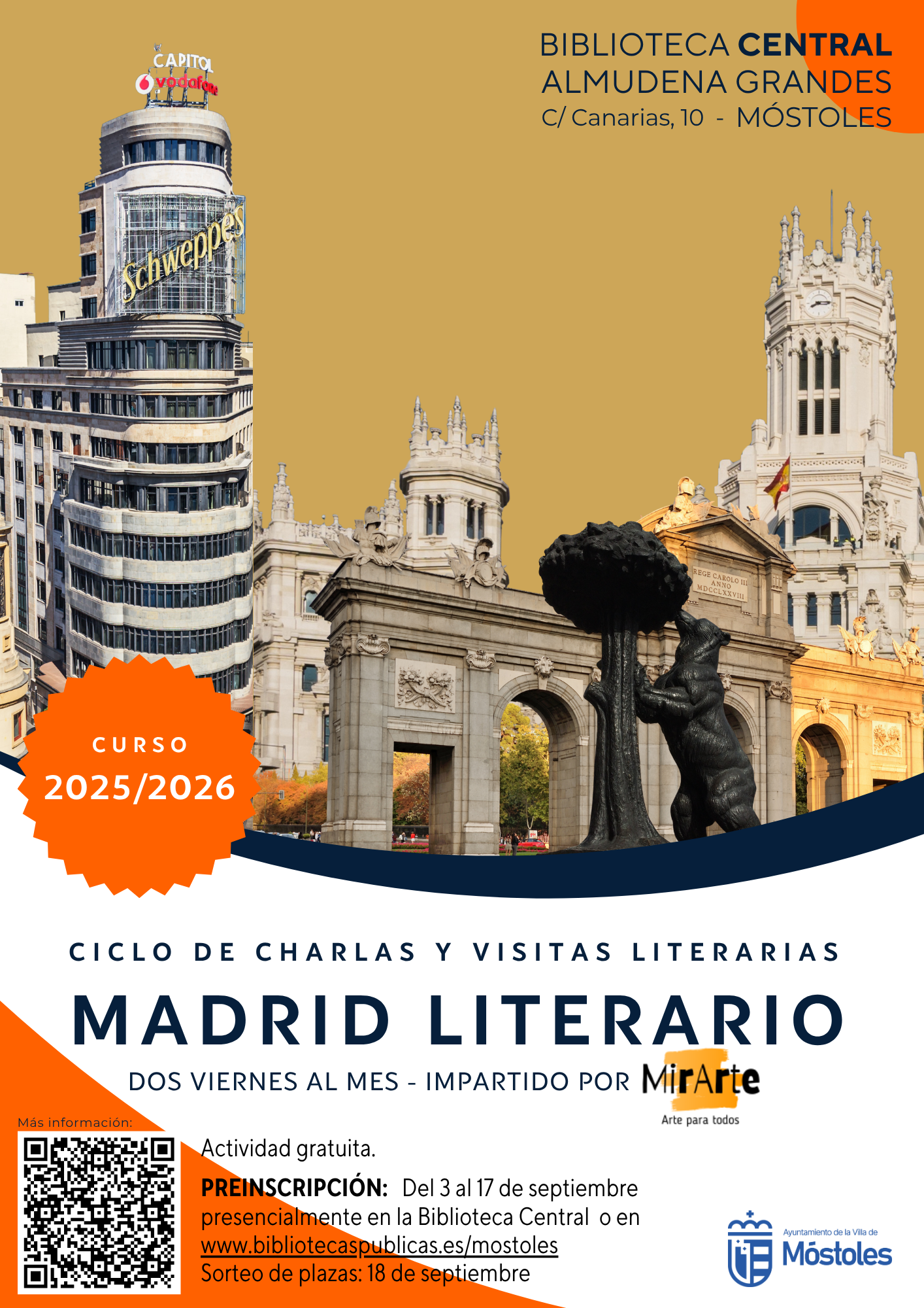 La actividad "Madrid Literario" propone un recorrido por la ciudad a través de la literatura. Cada sesión parte de una recomendación literaria, que servirá como punto de partida para abordar el tema central del mes. El ciclo incluye una charla mensual en la Biblioteca Central y una visita guiada relacionada con la lectura y el contenido tratado en la tertulia.