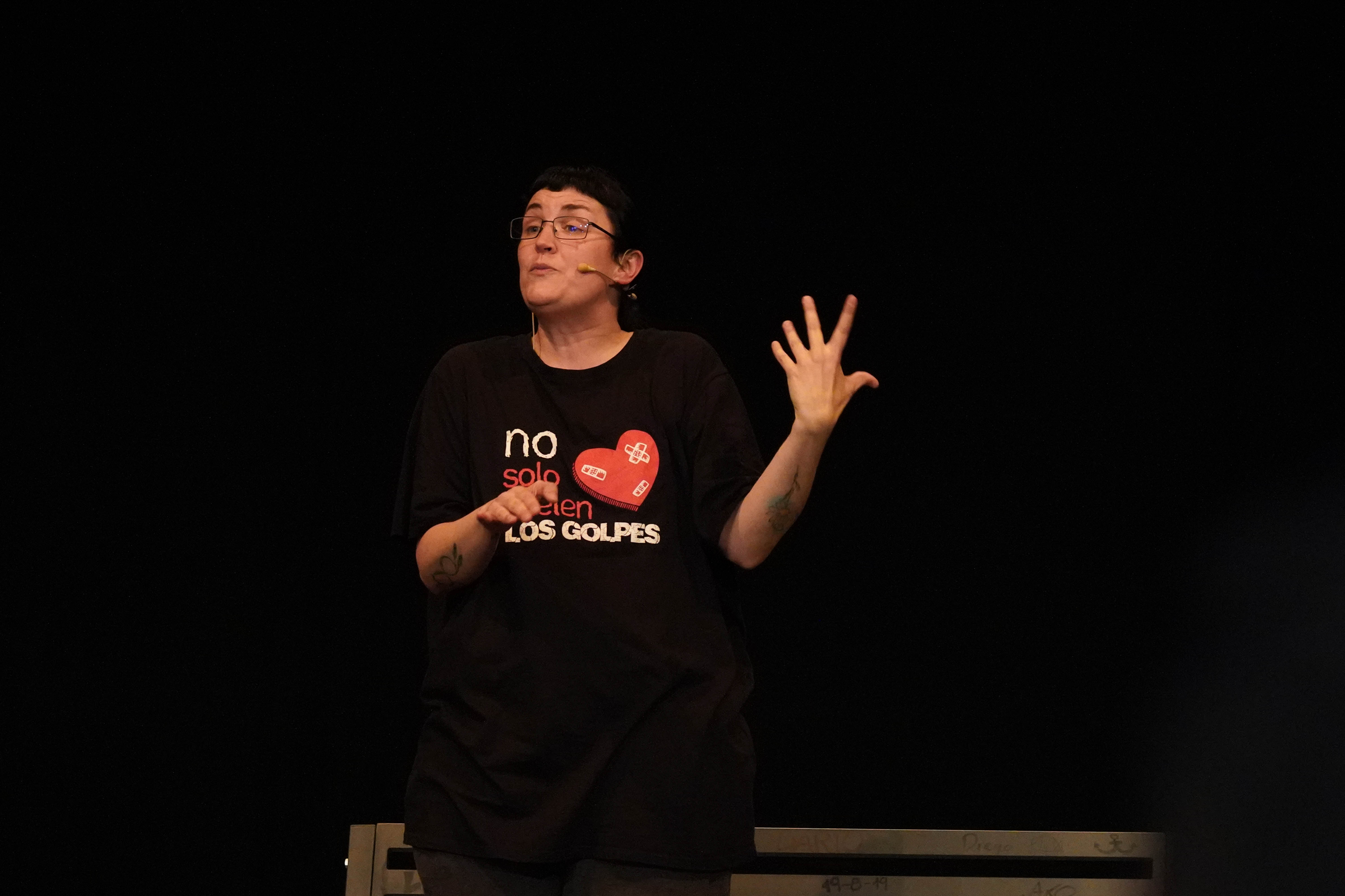 Imagen en alta resolución. Este enlace se abrirá mediante lightbox, puede haber un cambio de contexto"No solo duelen los golpes", dirigida por Darío Valtancoli, es una comedia plural protagonizada por Pamela Palenciano, una superviviente de violencia machista. Partiendo de sí misma, de su propia experiencia, y a través del humor ácido y la ironía, la obra nos conecta con la historia universal de las violencias machistas y la construcción de estereotipos que generan la desigualdad que permite ejercer la violencia sobre otra persona, en todos sus niveles.