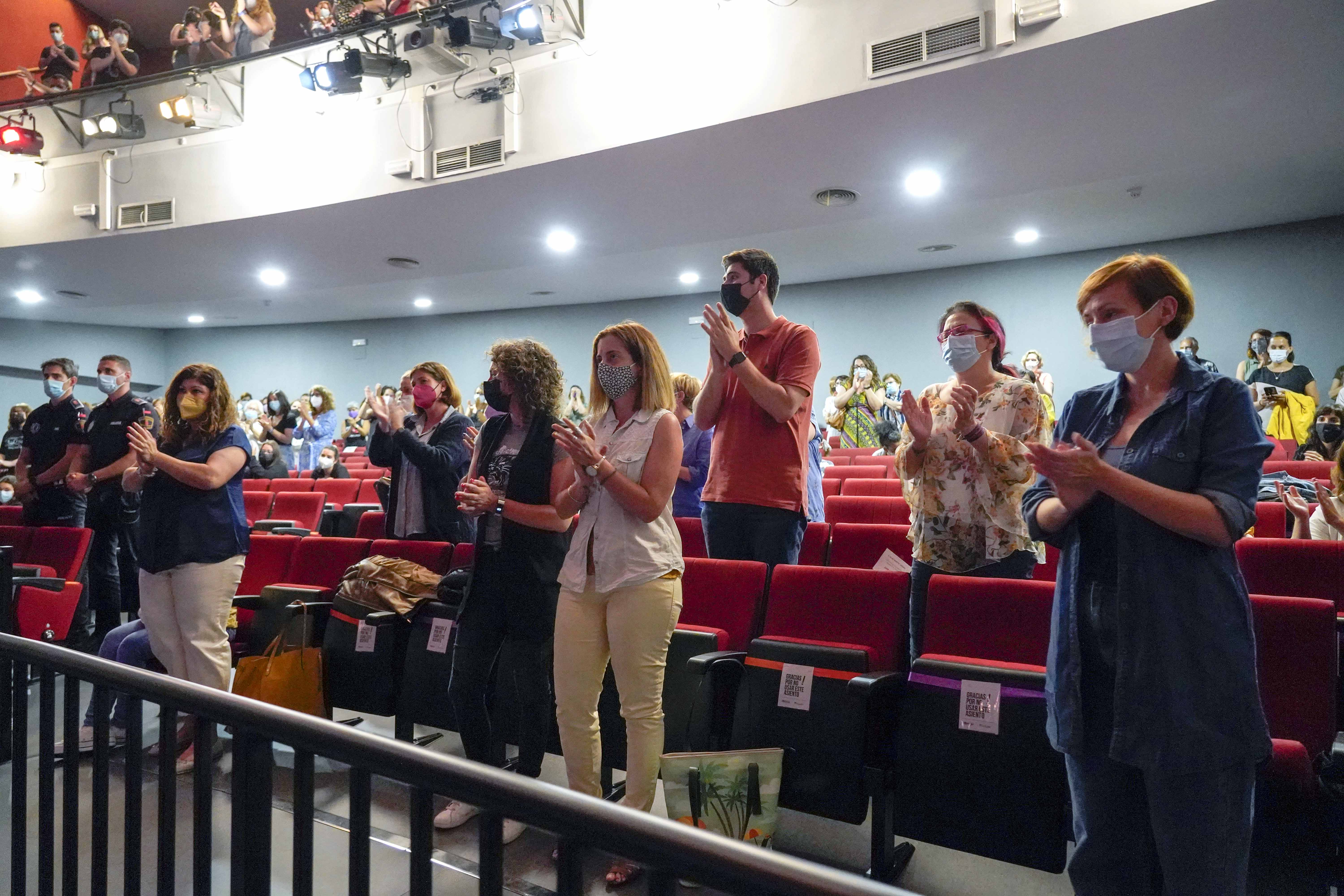 La Alcaldesa de Móstoles, Noelia Posse, junto a la Concejala Igualdad, Lola Triviño, al Concejal de Seguridad, Convivencia, Cultura y Transición Ecológica, Alex Martín, y la Portavoz de Podemos, Mónica Monterreal, han asistido a la representación, en el Teatro Villa de Móstoles.