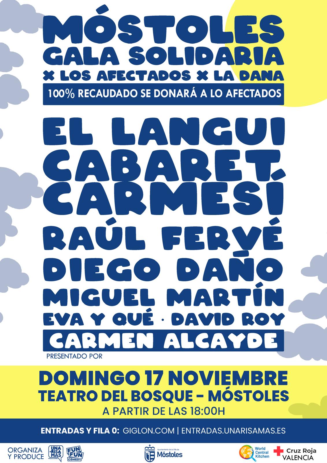 Las productoras Unarisamas Producciones y Fun Fun Comedy, junto con el Ayuntamiento de Móstoles, y bajo la dirección artística de Raúl Fervé, van a organizar un espectáculo para todos los públicos, en el que participarán diferentes artistas como El Langui, los cómicos Raúl Fervé, Diego Daño, Miguel Martín, Eva y Qué, y en el que se podrá ver, además, el show de Cabaret Carmesí y los trucos del mago David Roy, conocido por el programa televisivo "Got Talent". La gala será presentada por la carismática y colaboradora de televisión Carmen Alcayde.