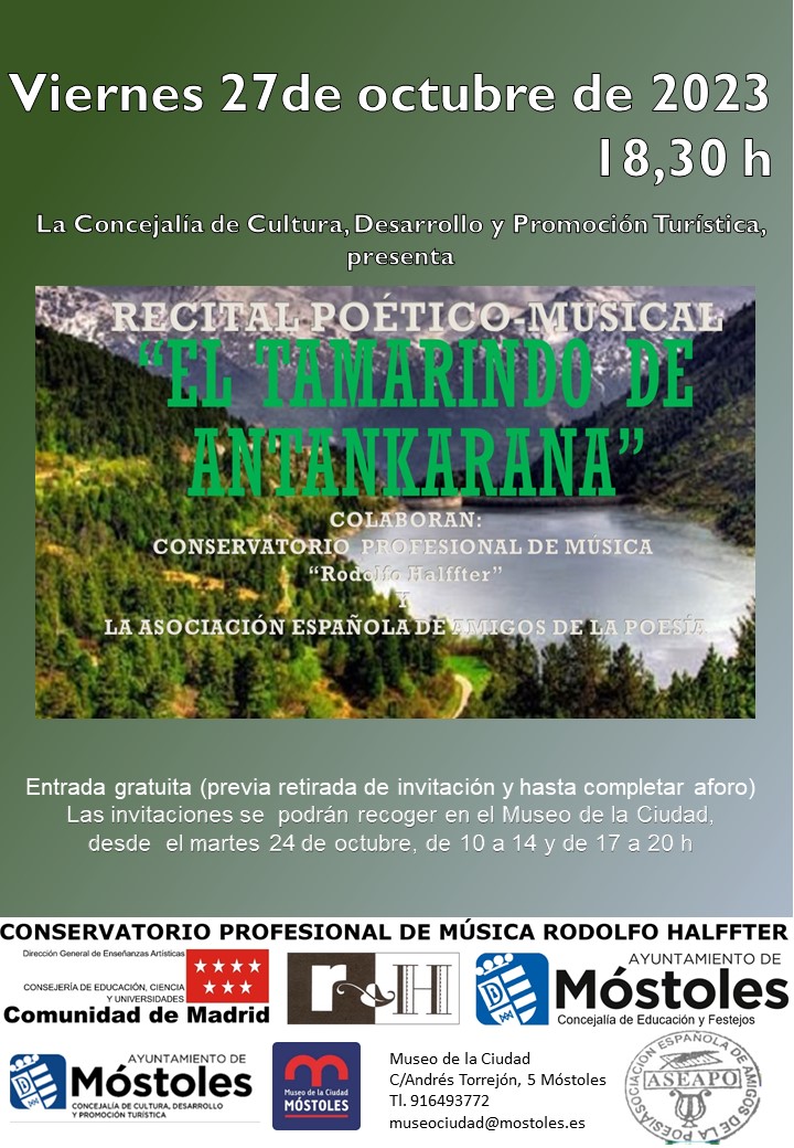 El Museo de la Ciudad organiza, el viernes 27 a las 18:30 h, en colaboración con la Asociación Española de Amigos de la Poesía y el Conservatorio Profesional de Música "Rodolfo Halffter", el recital poético-musical "El Tamarindo de Antankarana".