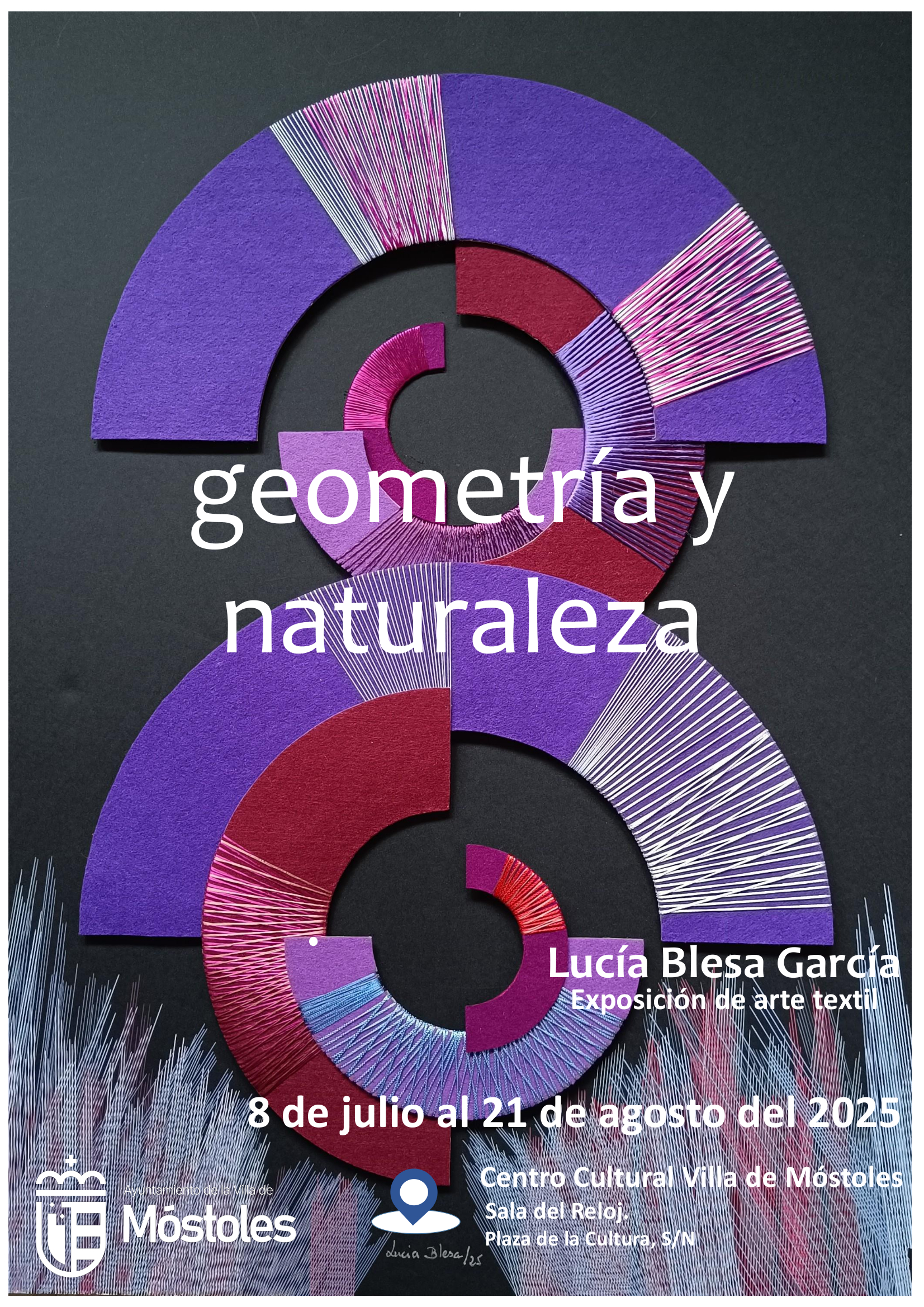 El martes 8 de julio, la exposición de arte textil "Geometría y Naturaleza", de la artista Lucía Blesa García, se mostrará en la Sala del Reloj del Centro Cultural Villa de Móstoles, hasta el 21 de agosto. En él la artista juega con las formas geométricas y los hilos, fusionando en esta curiosa propuesta expositiva estos dos ejes temáticos que inspirarán al espectador.