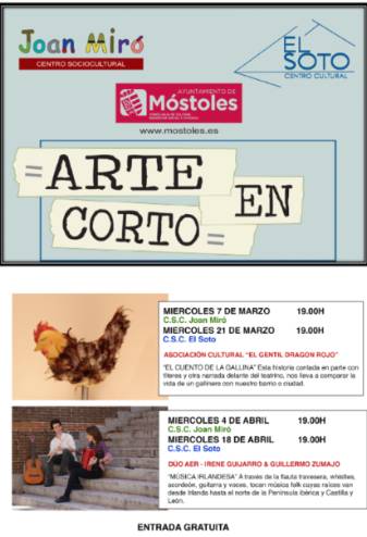 - "Arte en corto" tiene como objetivo promocionar la dinamización de los centros socioculturales con actuaciones de pequeño formato, de manera gratuita.