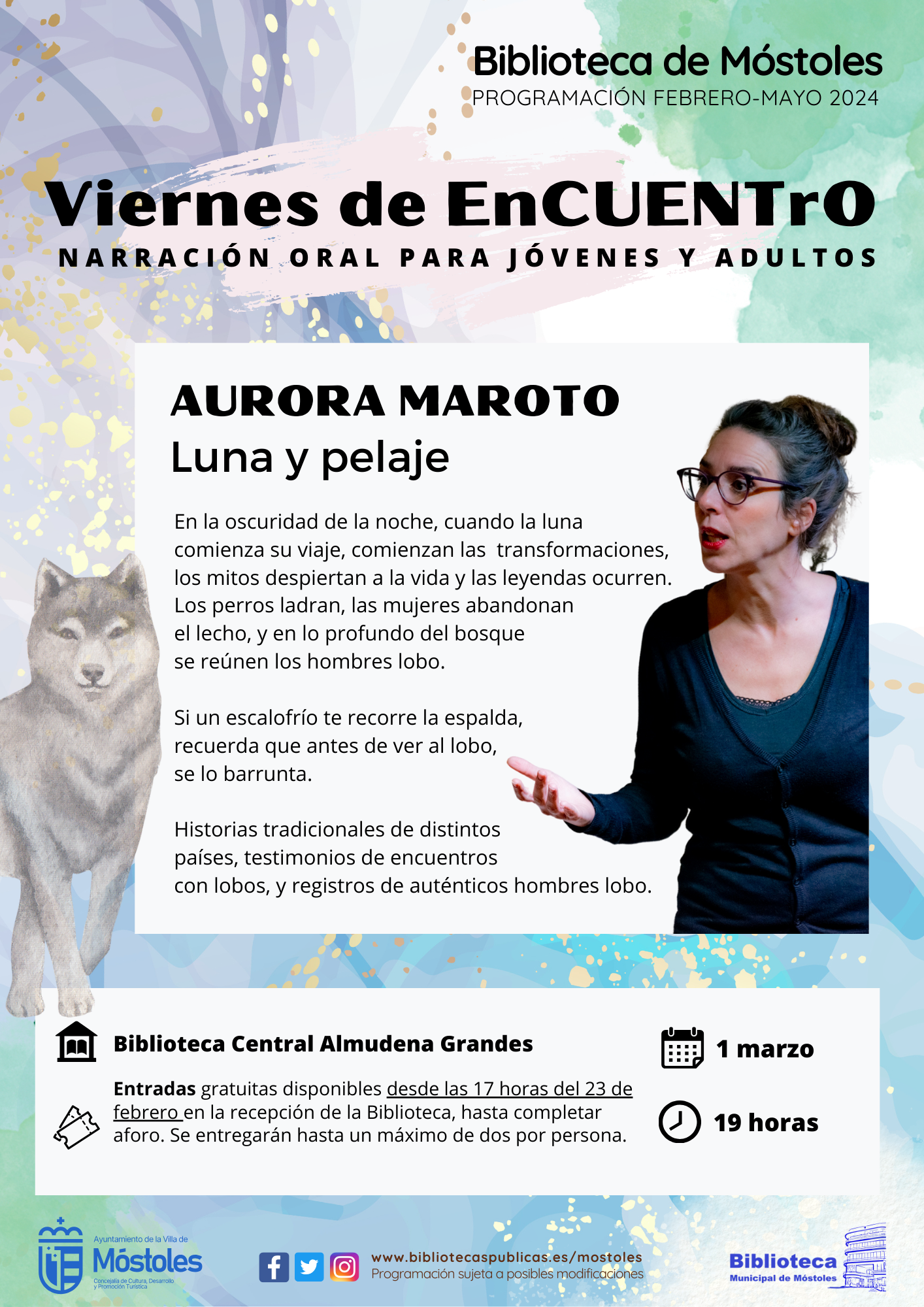 "LUNA Y PELAJE" DE AURORA MAROTO. NARRACIÓN ORAL PARA ADULTOS, dentro de la programación de Viernes de Encuentro, a las 19 horas en la Biblioteca Central.