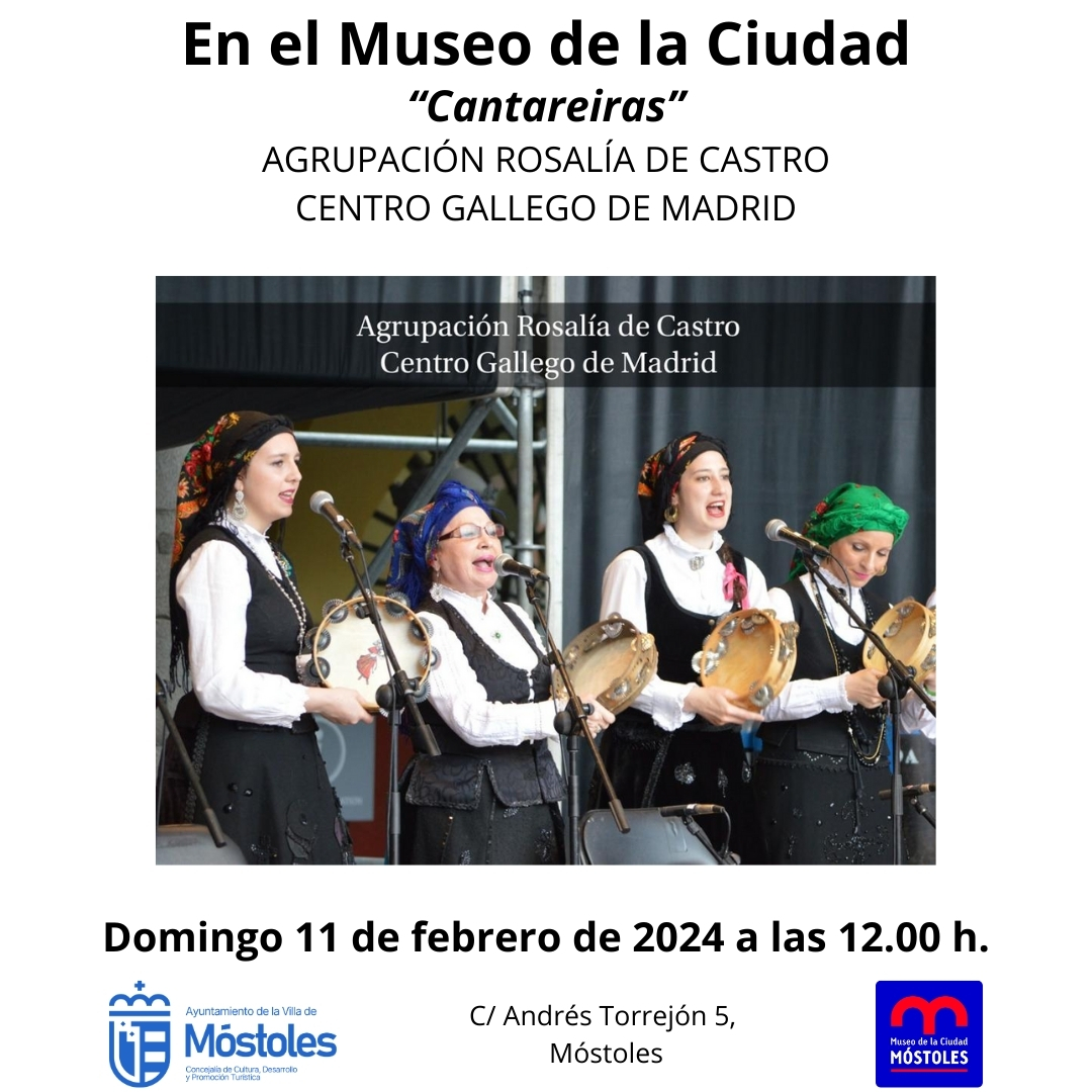 El Museo de la Ciudad de Móstoles acoge, a las 12 horas, la actuación de la Agrupación Artística Gallega "Rosalía de Castro", la agrupación folclórica más antigua de Madrid, integrada sólo por aficionados.
