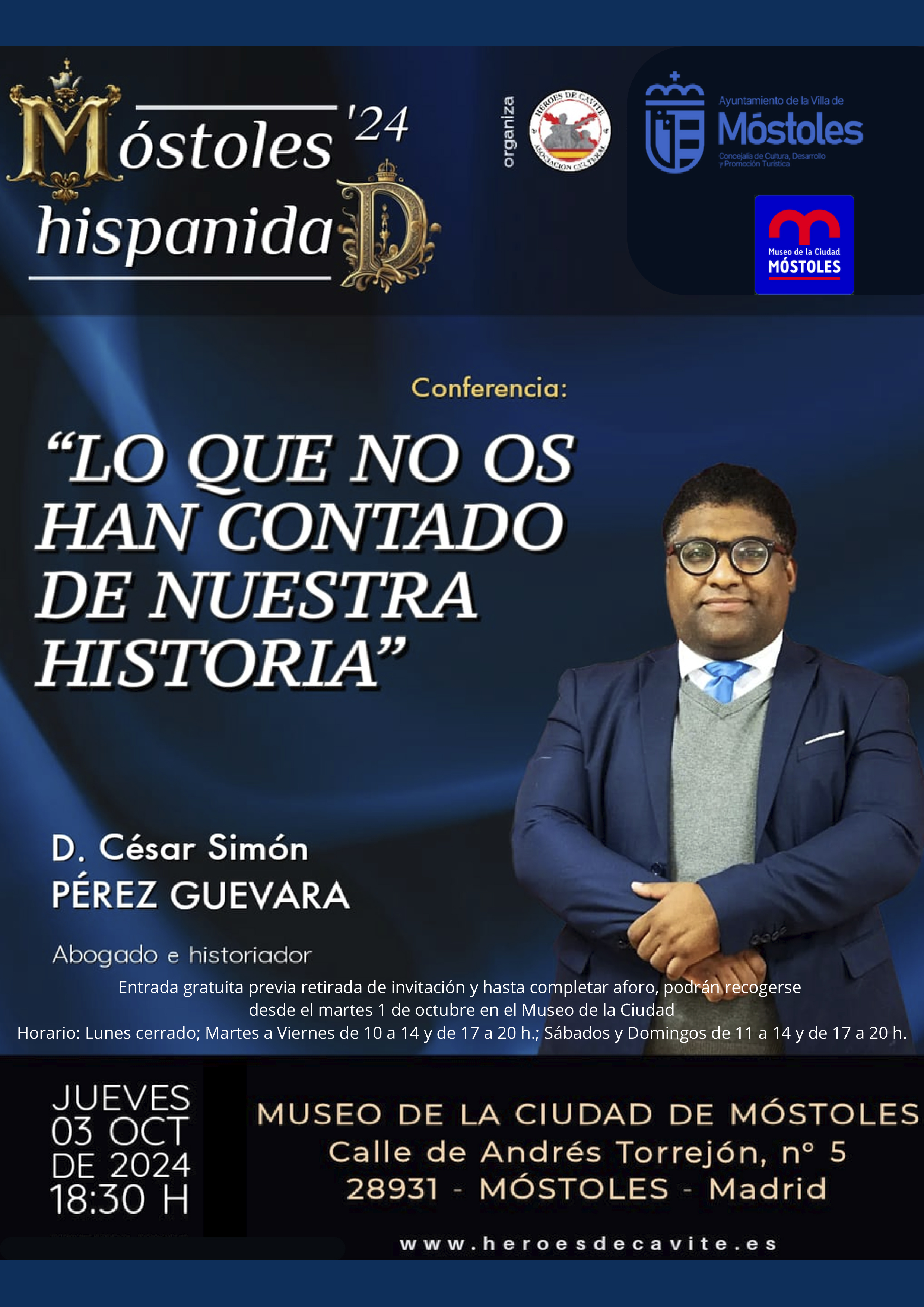 El jueves 3 de octubre, a las 18:30 h, el abogado e historiador, César Simón Pérez Guevara, ofrecerá una interesante conferencia que versa sobre la Hispanidad, "Lo que no os han contado de nuestra historia".