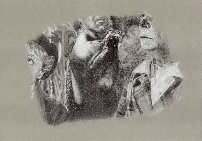 En cuanto a los retratos, reproducen a gente del cine mediante un dibujo realista, fuera de su contexto cinematográfico —aunque tres de ellos pertenezcan a escenas de sus películas.