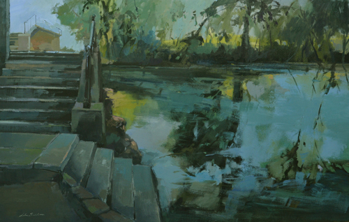 Las playas de Galicia o del Mediterráneo están presentes en los paisajes de esta pintora, así como los ríos, riberas y estanques de Toledo, del Retiro o El Capricho madrileños, de Arenas de San Pedro, de Atienza, de Marchamalo, Combarro o Campello. Todo se hace pintura y paisaje en la mirada atenta de Lola Saelices. Pintura al aire libre, retocada en el estudio.