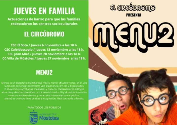 El Ayuntamiento de Móstoles, a través de la Concejalía de Cultura, Desarrollo y Promoción Turística, continúa con la programación de Jueves en Familia y que este mes de noviembre centrará su temática en el mundo circense.