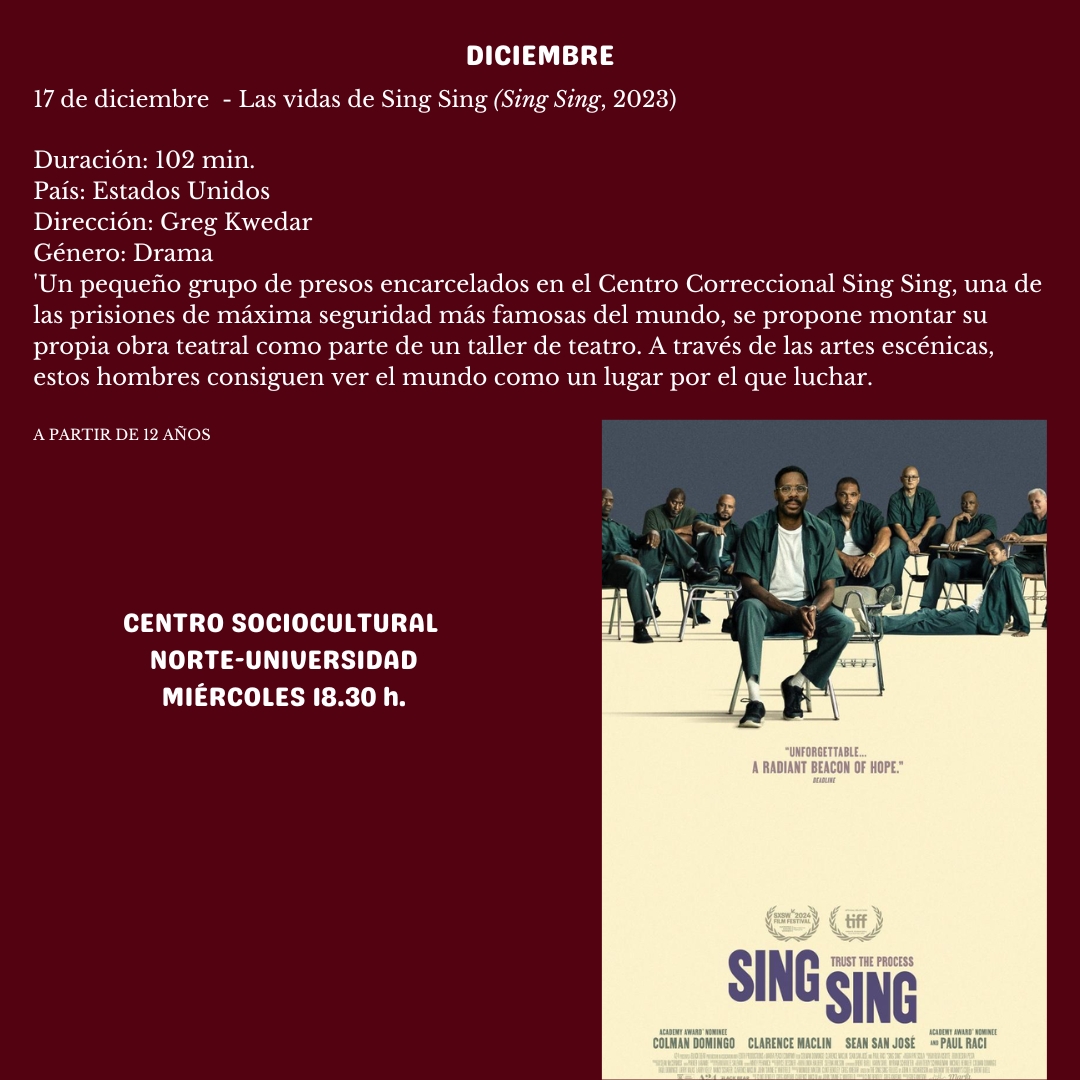 Dentro del programa Filmoteca, el miércoles 17 a las 18:30 h se proyecta la película "Las vidas de Sing Sing" (Sing Sing, 2023), en el Centro Sociocultural Norte-Universidad.