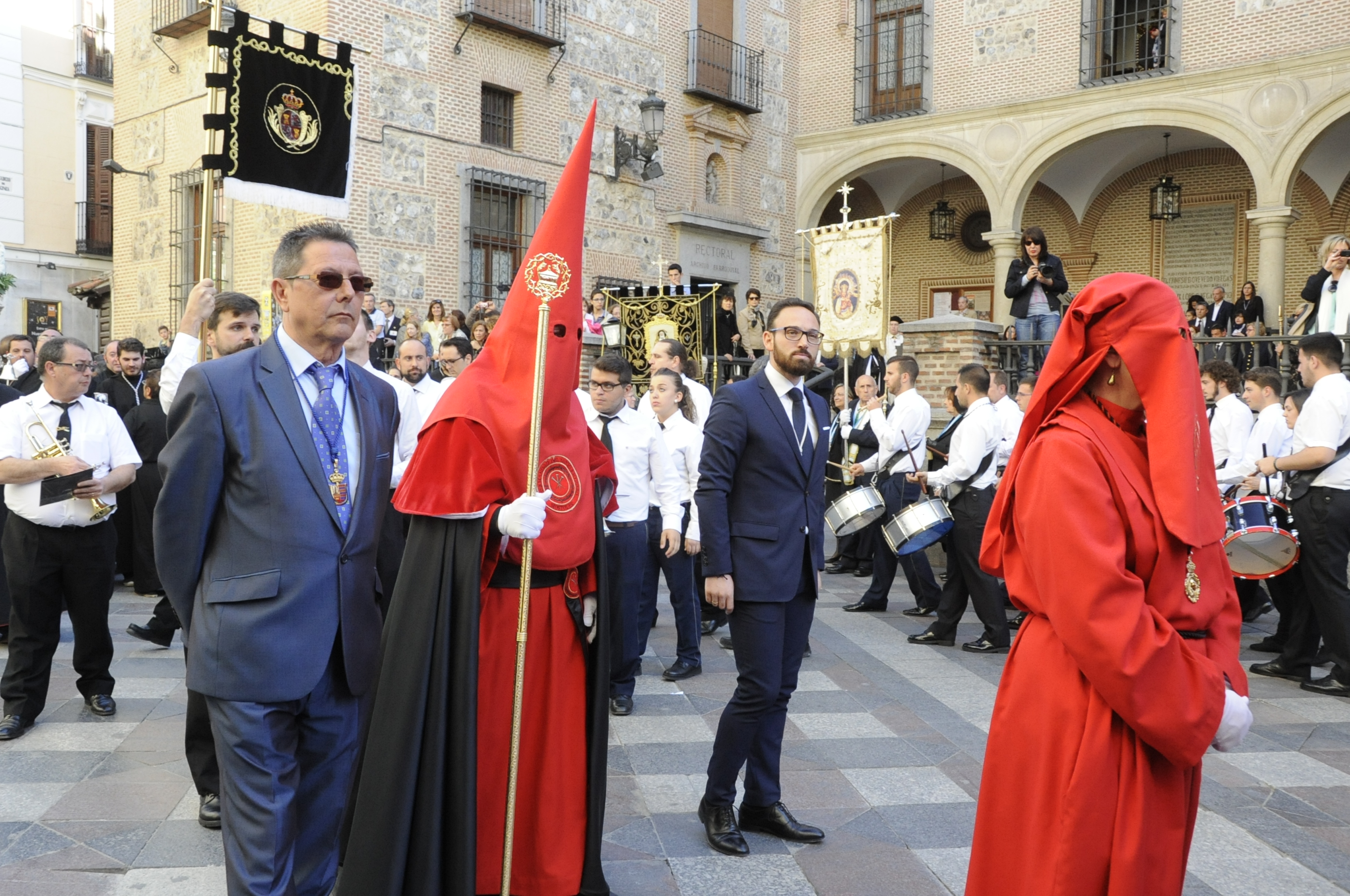 Los hermanos de esta hermandad han desfilado emocionados, custodiando al Cristo, y portando una bandera de Móstoles. Fundada hace doce años, cerca de 85 hermanos componen esta cofradía que cuenta con dos pasos singulares para la Semana Santa de Móstoles: el Cristo de Medinaceli y al Cristo Yacente.