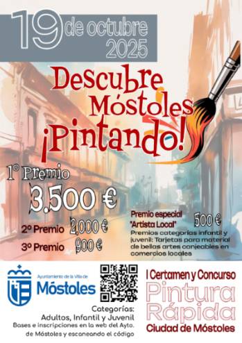 Móstoles va a celebrar el I Certamen y Concurso de Pintura Rápida "Descubre Móstoles ¡Pintando!", el domingo 19 de octubre, con el objetivo de fomentar el arte local y la participación juvenil e infantil en la ciudad.