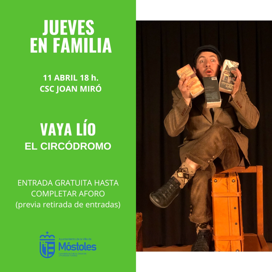 Dentro de "Jueves en familia", la Asociación El Circódromo llega al Centro Sociocultural Joan Miró, a las 18:00 h, con "Vaya lío", show que mezcla el circo, humor e improvisación para toda la familia. La entrada es gratuita, previa retirada de invitaciones en el propio centro.
