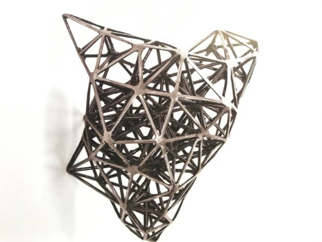 "Se inician entonces unos procesos de trabajo donde el cuerpo se abre al espacio, planteándolo como un nuevo material plástico y convirtiéndolo en un eje fundamental para articular el conjunto del proyecto. Comienzo a explorar recursos plásticos como los fractales geométricos, que me permiten "modelar" directamente el espacio. De esta manera surgen una serie de propuestas escultóricas e instalaciones que posicionan el centro de mi reflexión entre el espacio, el objeto y el espectador, planteando la constante pregunta de ¿cómo creamos espacio?. A mediados de 2016, esta investigación se consolida y es expuesta en la Fundación Antonio Gala Para Jóvenes Creadores (Córdoba) bajo el título de Estratos. Hoy este proyecto itinera a la sala de exposiciones del Ayuntamiento de Móstoles, aglutinando una selección que recoge tres años de trabajo", explica Schweitzer.
