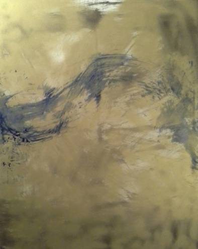 Leo Vicent asegura que son "telas que nos miran desde lo alto, desdibujadas y retorcidas, que esconden las huellas del cuerpo, ahora dorado, eterno e inmaterial".