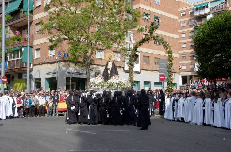 Con esta procesión. que destaca especialmente por el cromatismo de una puesta en escena caracterizada por arcos de romero florido colocados en diversos puntos del recorrido, Móstoles puso el broche final a la Semana Santa del municipio.