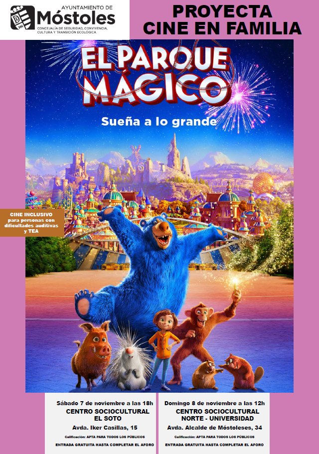 El sábado 7 comienza el ciclo "Proyecta" con "El Parque Mágico" en el Centro Sociocultural El Soto, a las 18 horas. Mientras que el domingo 8 la misma película se podrá ver en el Centro Sociocultural Norte-Universidad, a las 12:00 h.