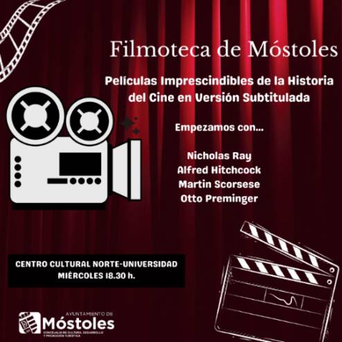 Los cineastas Alfred Hitchcock, Martin Scorsese, Nicholas Ray y Otto Preminger llegan a Móstoles este mes de noviembre de la mano del programa "Filmoteca", diseñado por la Concejalía de Cultura, Desarrollo y Promoción Turística.