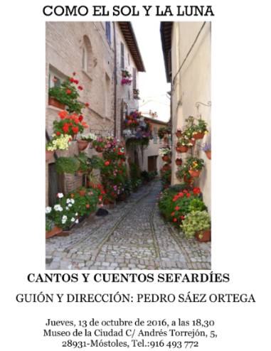 Imagen en alta resolución. Este enlace se abrirá mediante lightbox, puede haber un cambio de contextoLa concejalía de Cultura y Bienestar Social presenta el jueves 13 de octubre a las 18:30, en el Museo de la Ciudad, "Como el Sol y la Luna. Cantos y Cuentos Sefardíes", concierto dirigido por Pedro Sáez e interpretado por Mª José Álvarez, Agustín Arenales, Ana I. Gris, Érika Puentes y Pedro Sáez.