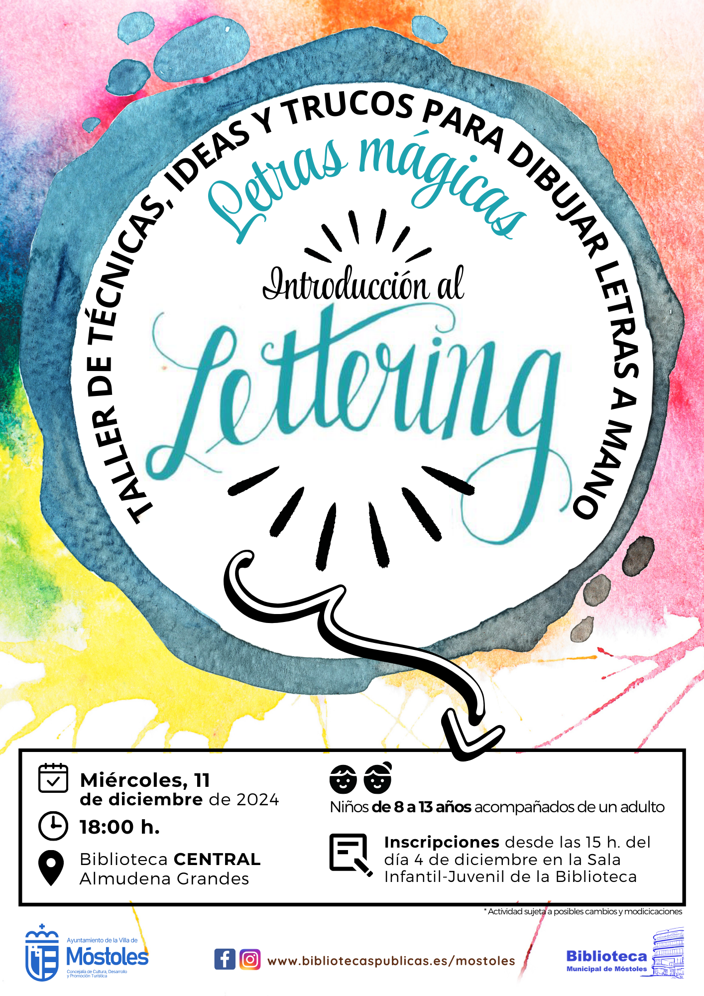 El miércoles 11 de diciembre, se llevará a cabo otro original taller, dirigido a niños de 8 a 13 años, como es "Letras mágicas: introducción al Lettering", en la Biblioteca Central, a las 18:00 h, donde aprender el arte de dibujar letras para crear y diseñar palabras o frases.