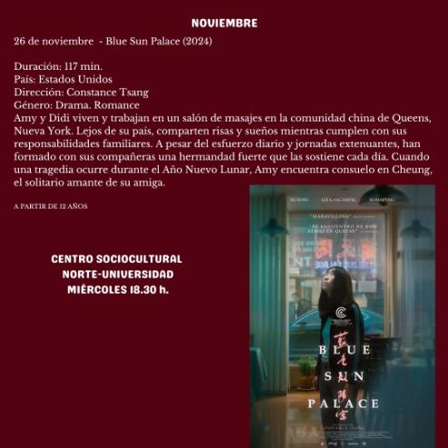 Dentro de Filmoteca, el miércoles 26 se podrá ver "Blue Sun Palace" (2024), drama estadounidense, dirigido por Constance Tsang, sobre la comunidad china de Queens, Nueva York.