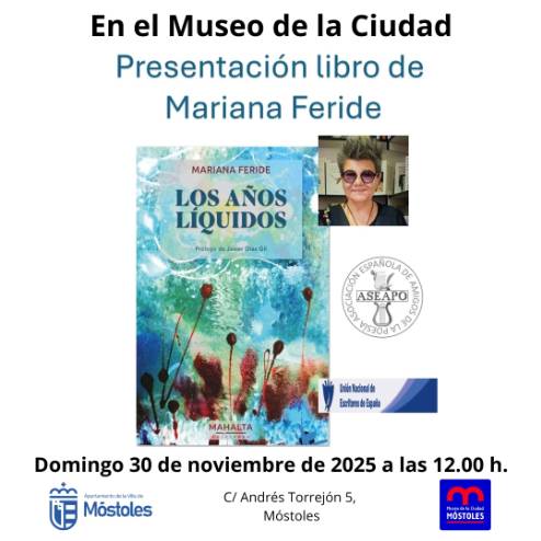 El Museo de la Ciudad acoge el domingo 30, a las 12:00 h, la presentación del libro "Los años líquidos", de Mariana Feride. La entrada es gratuita, previa retirada de invitaciones en el propio centro a partir del martes 25 de noviembre.