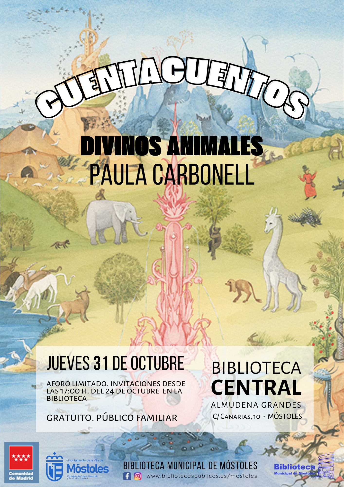 Con motivo de la Muestra del Libro Infantil y Juvenil, el jueves 31, a las 18:00 h, la Biblioteca Central Almudena Grandes acogerá el cuentacuentos "Divinos animales", que correrá a cargo de Paula Carbonell.