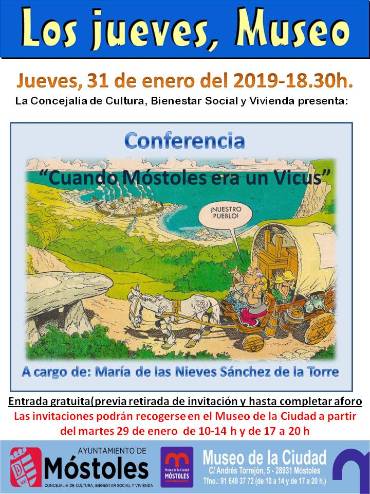 Con entrada gratuita previa recogida de la invitación, la charla girará en torno a una puesta al día de los hallazgos arqueológicos romanos (escultura, inscripción, moneda, terra sigillata, dolia, restos de posibles villae, roleos, etc.) que nos permiten descubrir que seguramente Móstoles, del cual desconocemos su nombre antiguo, sería al menos un vicus y no una simple villa, según la autora.