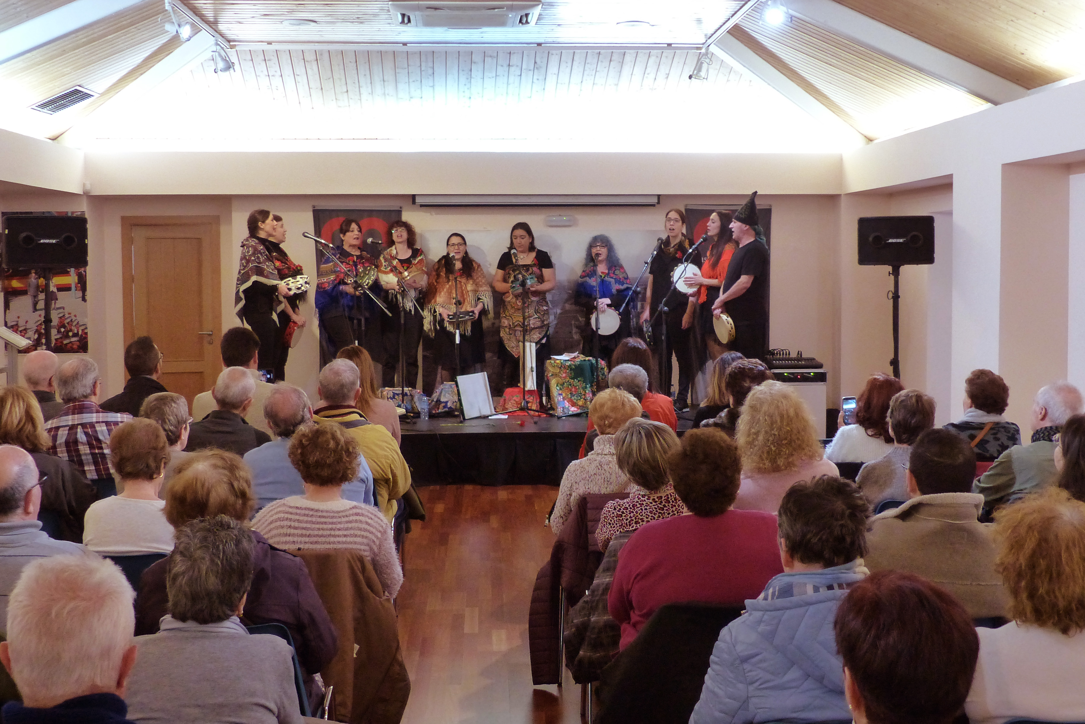 Concierto de CHULAPEIRAS 1Imagen en alta resolución. Este enlace se abrirá mediante lightbox, puede haber un cambio de contextoConcierto de CHULAPEIRAS 1El grupo musical "Chulapeiras" que fusiona a chulapas madrileñas y pandeireteiras gallegas que cantan acompañándose de pandeiretas, pandeiros, cunchas y otros instrumentos tradicionales, tal y como lo hacía la gente antaño en las aldeas tras la jornada de trabajo, actuó ayer domingo en el Museo de la Ciudad. Entre los asistentes se encontraban la Alcaldesa, Noelia Posse, el Concejal de Seguridad, Convivencia, Cultura y Transición Ecológica, Alejandro Martín, la Concejala de Presidencia, Rebeca Prieto, la Concejala de Educación y Juventud, Nati Gómez y el Concejal de Mejora y Mantenimiento de los Espacios Públicos, David Muñoz.