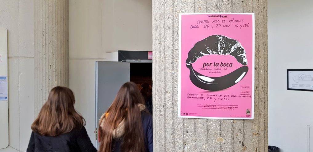 Por segundo año consecutivo la Concejalía de Educación ha apostado por la prevención como estrategia para abordar algunos de las problemáticas más acuciantes para la juventud. Tras el éxito de "Malditos 16" en 2017, que trataba sobre el suicidio juvenil, este año los y las estudiantes de centros de secundaria de Móstoles han podido disfrutar de "Por la Boca", una obra de la compañía Ventrículo Veloz, que busca informar, ayudar en la detección precoz y formar tanto al alumnado como a los profesores y demás personal de la comunidad educativa.