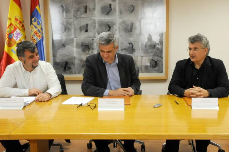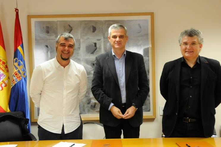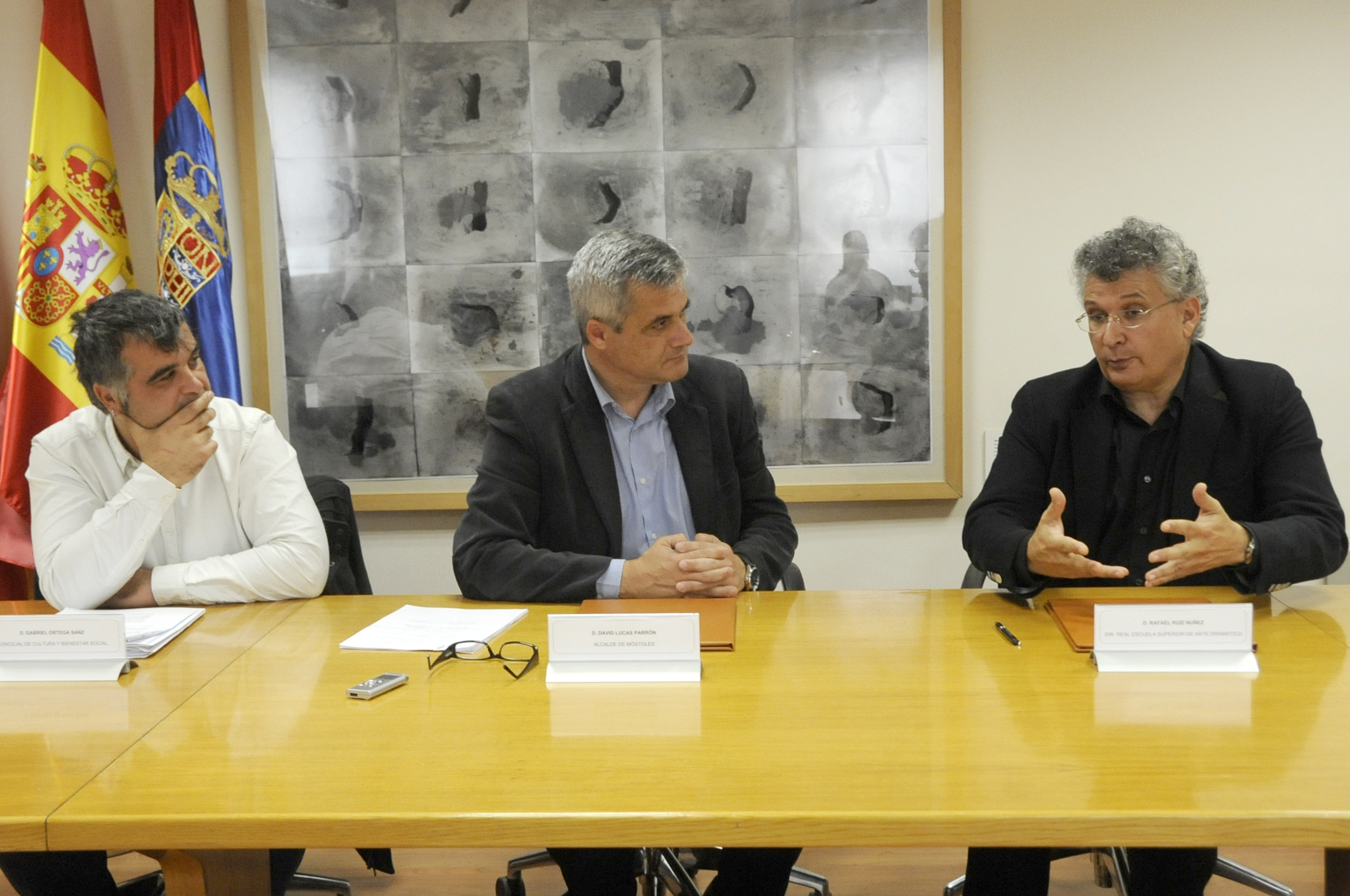 Imagen en alta resolución. Este enlace se abrirá mediante lightbox, puede haber un cambio de contextoEl alcalde de Móstoles, David Lucas y el director de la Real Escuela Superior de Arte Dramático (RESAD), Rafael Ruiz Núñez, han firmado esta mañana, junto al concejal de Cultura y Bienestar Social, Gabriel Ortega, un convenio de colaboración con el objeto de impulsar la libre creación y representación de las artes escénicas en todas sus variedades, contribuyendo a la ejecución de proyectos que incidan en el interés de la promoción de la ciudad a nivel nacional.