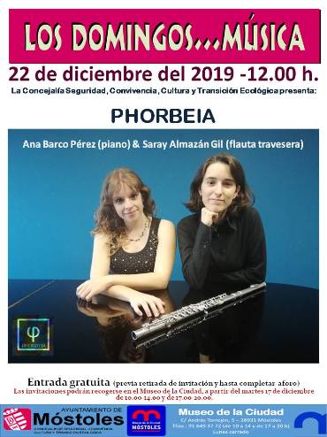 CARTEL 22.12.19Imagen en alta resolución. Este enlace se abrirá mediante lightbox, puede haber un cambio de contextoCARTEL 22.12.19El Museo de la Ciudad organizará el próximo día 22 de diciembre, a partir de las 12 horas, el concierto "Sonatas XIX-XX. El estilo compositivo de Francia y Alemania a través de la Sonata", a cargo de Phorbeia.