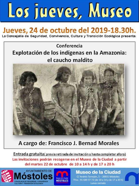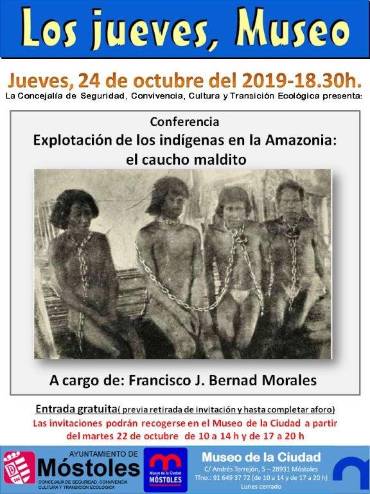 Imagen en alta resolución. Este enlace se abrirá mediante lightbox, puede haber un cambio de contextoLa Concejalía de Cultura organizará, a través del Museo de la Ciudad, el día 24 de octubre (a partir de las 18.30 horas, con entrada gratuita), la conferencia "Explotación de los indígenas en la Amazonia: el caucho maldito", de Francisco Javier Bernad Morales.