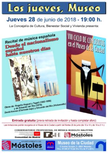 Imagen en alta resolución. Este enlace se abrirá mediante lightbox, puede haber un cambio de contextoEl Museo de la Ciudad organizará, el jueves 28 de junio, a las 19.00 horas, un recital de música española titulado "Desde el nacionalismo español hasta nuestros días", a cargo de los intérpretes David Arenas (clarinete bajo) y Eduardo del Río (violoncello), profesores del Conservatorio de música Rodolfo Halffter.